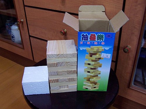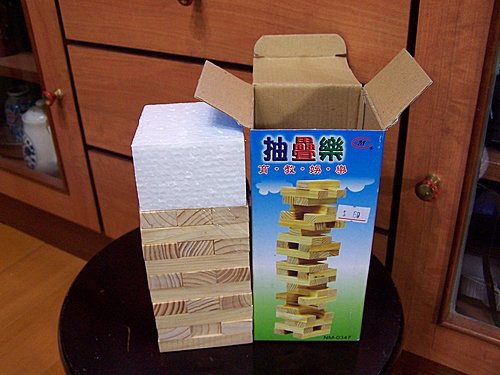 妹妹最近去十元商店買了一盒疊疊樂回來玩,一盒要60??,名字是抽疊樂??<br><br>那也來個開箱文吧<br><br><img src="http://pic.pimg.tw/jeffyeh/1383315770-2049152326.jpg?v=1383315771"/><br><br>哇可以拿出來玩了.<br> <img src="http://pic.pimg.tw/jeffyeh/1383315771-698808930.jpg?v=1383315772"/><br><br>疑???怎麼拿出來後,比盒子矮那麼多??<br> <img src="http://pic.pimg.tw/jeffyeh/1383315773-2662983809.jpg"/><br><br>蝦米!!!底部還有個保麗龍....<br> <img src="http://pic.pimg.tw/jeffyeh/1383315774-1895809916.jpg"/><br><br>這保麗龍也太厚了吧,厚達四層.......<br> <img src="http://pic.pimg.tw/jeffyeh/1383315775-2314468709.jpg"/><br><br>真是一整個無言.....<br>
