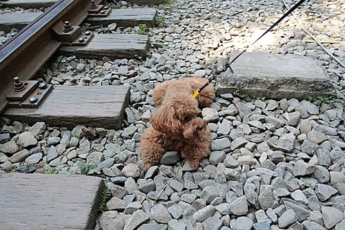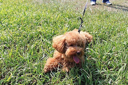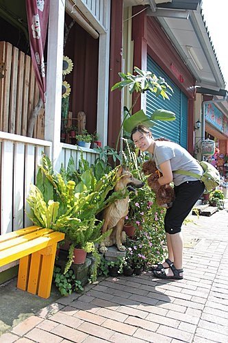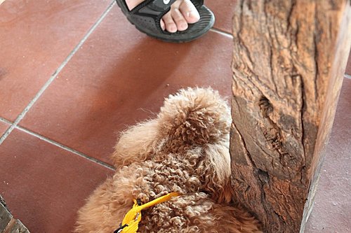 笨狗,你也太懶了吧,才走幾步就累了,還會選個最涼的趴下.....